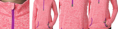 7 oz., 100% spun polyester fleck fleece; Contrast zipper and front pouch pocket; Thumbholes on cuffs;