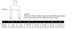 | Chest | 34-36 | 38-40 | 42-44 | 46-48 | 50-52 | 54-56 |