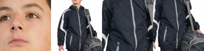 * Micron(tm) polyester is a lightweight, wind/water-resistant fabric * 100% polyester micromesh lining * Embossed inserts for subtle textured pattern * Woven label * Front zipper * 3-piece hood with spandex binding * Set-in sleeves * Front zippered pockets * Elastic cuffs * Adjustable bottom hem with hidden shockcord closure in right pocket (on Adult)