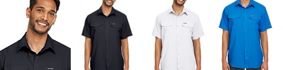 100% polyester interlock Omni-Wick™ moisture management; Omni-Shade™ UPF 50 sun protection; Quick dry; Classic fit; Performance fishing gear; Printed Columbia PFG print on left sleeve and left chest;