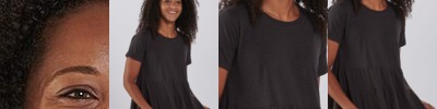 - Double-needle stitched neckline, bottom hem and sleeves